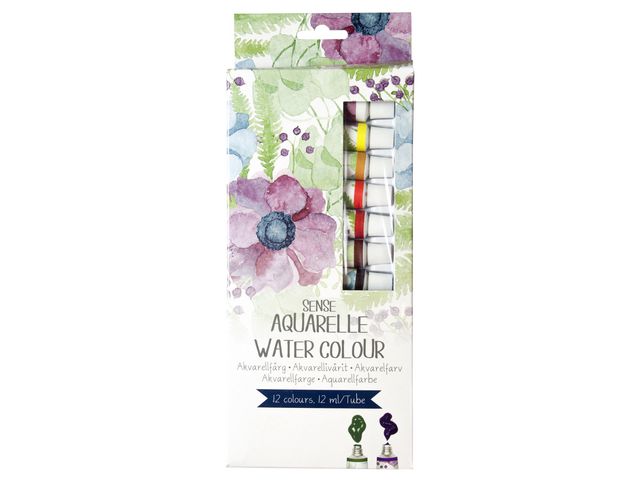 Ett set med hela 12 kulörer akvarellfärg. Späd färgen med vatten för att uppnå den nivå av transparens som önskas. Färgerna kan blandas för att få fram nya kulörer. Använd akvarellpapper med den textur som önskas och välj ett papper av god kvalitét!
