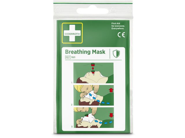 Cederroth Andningsmask är ett hjälpmedel för att ge mun-till-mun-andning på rätt sätt samtidigt som det minskar risken för kontakt mellan hjälpare och skadad.