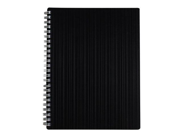 Spiralbundet A4 kollegieblock med utsidor i svart PP plast. Linjerade sidor.
