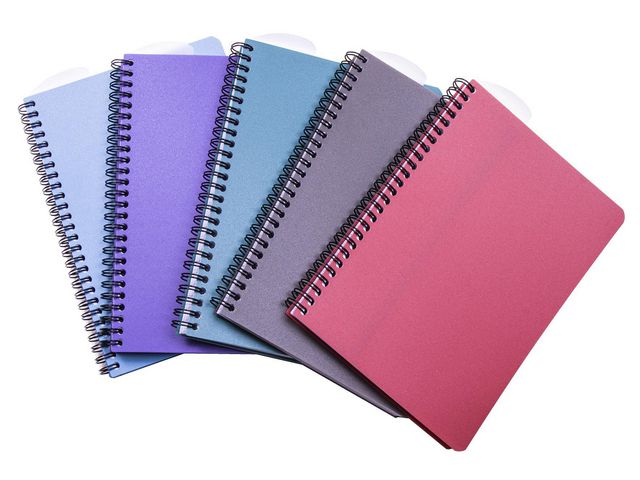 Spiralbundet anteckningsblock i A5-format för alla dina anteckningar. Flyttbar avdelare/linjal. Papper av hög kvalitet. Anteckningsblocket finns i flera snygga färger.