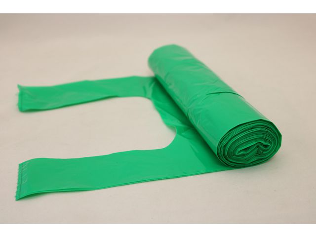 Grön avfallspåse tillverkad av förnyelsebart material.