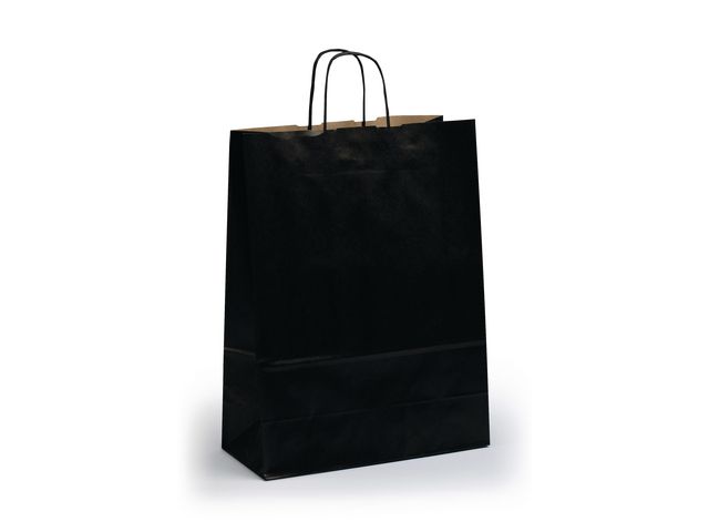 Högkvalitativ papperskasse med handtag av tvinnat papper och förstärkt botten.