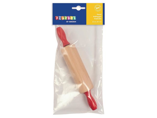 Använd till både pepparkakorna och till lättleran. Kaveln är i trä och har röda handtag. En perfekt liten lekkavel till barn.