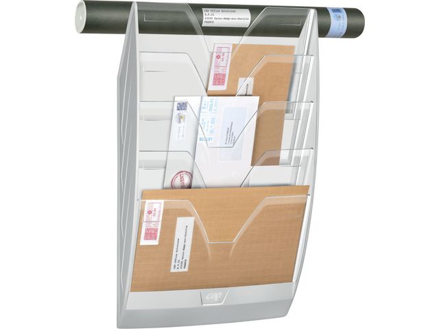 CEP ReCeption 154 vägghylla är tillverkad av stöttålig polystyren och det är en attraktiv men praktisk förvaringslösning för din arbetsplats eller i receptionen. Vägghyllan är idealisk i visningssyfte eftersom den kan användas för förvaring av stora, tjocka dokument som broschyrer eller tidningar, både vertikalt och horisontellt. Dessutom har varje enhet 5 fack för att göra organiseringen enkel och den levereras komplett med en väggmonteringssats för din bekvämlighet. Om du vill ha extra förvaringsutrymme kan du enkelt koppla samman flera vägghyllor och fästa dem bredvid eller över varandra. Denna vägghylla passar fint med alla skrivbordstillbehör från CEP:s ReCeption-sortiment för ett snyggt och enhetligt utseende.