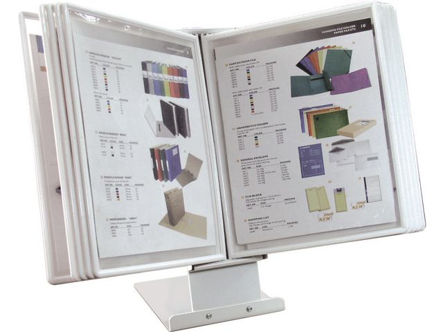 Bordställ av stål för 10 paneler. Vitt. Justerbar i höjdled. A4-format, lätt att montera med skruvmejsel. 10st paneler i svart ingår