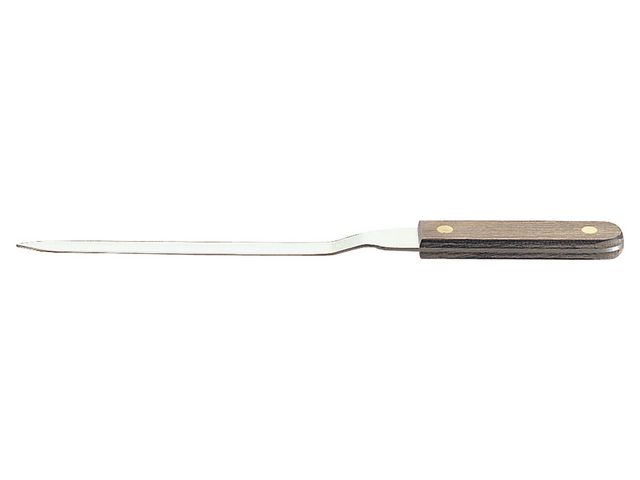 Med bekvämt trähandtag och kniv av rostfritt stål.