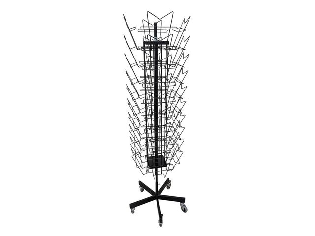 Det här broschyrstativet är utmärkt för att visa och dela ut marknadsföringsmaterial i områden med hög genomströmning, t.ex. turistattraktioner och evenemangslokaler. Det fyrsidiga stället har 10 platser på varje sida, och kan svängas för snabb och enkel bläddring. En stålbas med fem hjul ger lång hållbarhet samt enkel bärbarhet och förvaring.