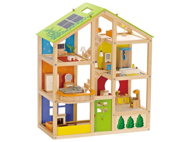 Utforska årets alla skiftningar med detta mångsidiga dockhus! Med sex rum, flyttbara trappor och ett vändbart sommar- och vintertak, komplett med solpaneler, bjuder detta dockhus in till lek och aktiviteter anpassade för alla årstider. Oavsett om det är soliga sommardagar eller mysiga vinterkvällar finns det alltid något att göra här. Huset är möblerat för fyra uppsättningar rum, inklusive sovrum, badrum, vardagsrum och kök, vilket gör det till en komplett och mångsidig lekplats för barn att utforska och skapa sina egna berättelser i.