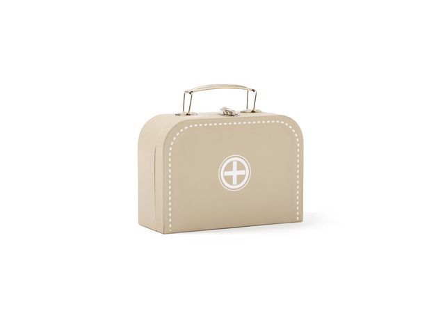Här hittar du stetoskop, termometer, tungspatel, pillerburk, salva, spruta och reflexhammare. Du kan ta av och sätta på locket på pillerburken då den sitter fast med kardborre.