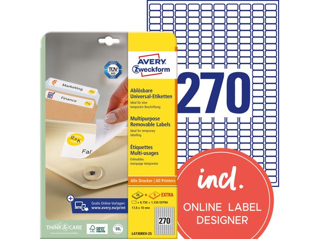 Du kan enkelt och helt gratis designa och skriva ut dina Avery-produkter med vår mjukvara Avery Design & Print, som innehåller mallar, grafik och designmöjligheter. Läs mer om mjukvaran på www.www.avery.se/software..