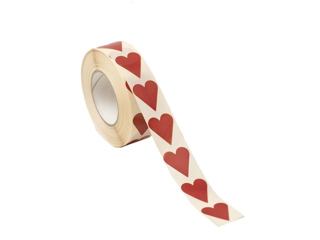 Denna rulle med hjärtformade etiketter från Hedlunds of Sweden kan placeras enskilt på presenter, där färgen sticker ut på en yta.