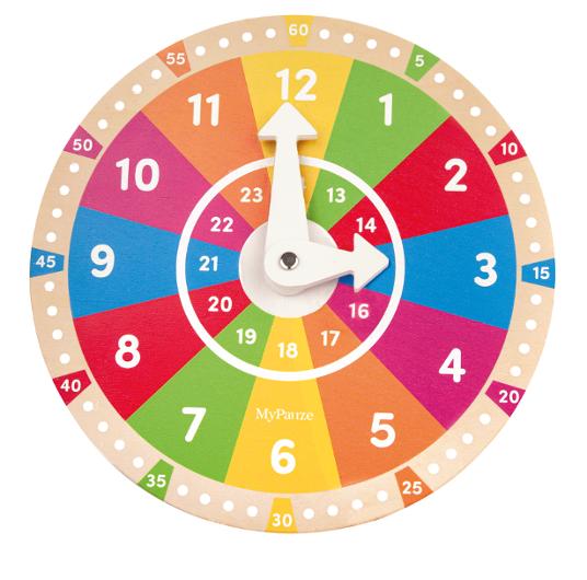 Genom att själva vrida visarna tränar barn finmotorik, logiskt tänkande och praktisk förståelse för tid – en viktig färdighet i vardagen. Ett utmärkt hjälpmedel för tidig inlärning där abstrakta begrepp blir konkreta, tydliga och enkla att ta till sig.
