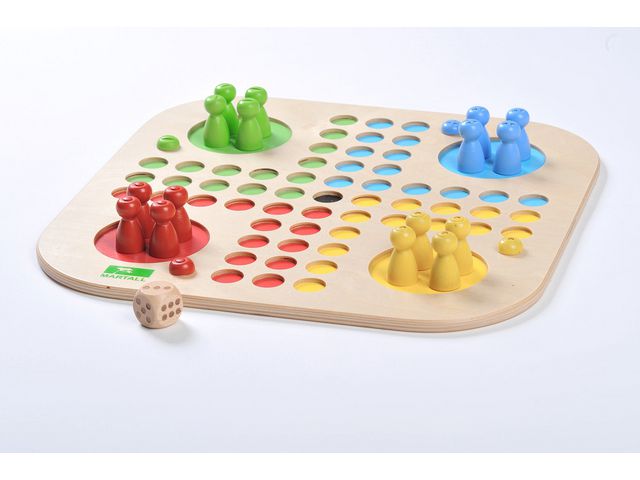 Stort Fiaspel i trä med nedsänkta hål för pjäserna. Spelet är mycket stabilt och hållbar. Greppvänliga spelpjäser som även är utrustade med upphöjda mönstermarkeringar så att personer med nedsatt syn kan spela genom att känna sig fram. Brädet är 40x40 cm. Vikt 1 kg. Levereras i robust kartong med totalt 16 pjäser i en tygpåse (4 i vardera färg), 1 tärning och spelregler. Ej lämplig för barn under 3 år.