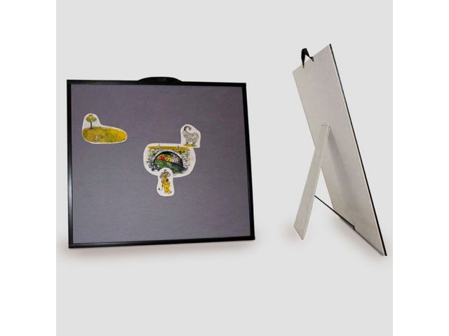Praktisk flanellograftavla med stödben och svart upphängningsband. Format: 900×800 mm. Grå filt Royal med svart lackad list. Flanotavlan går utmärkt att både hänga på väggen som att ställa på golvet med hjälp av stödbenet. Material: Flanotavlan är gjord av MDF, 3 mm så den är lätt och smidig men ändå rustik med hög kvalitet. Ingående råvara FSC-märkt.