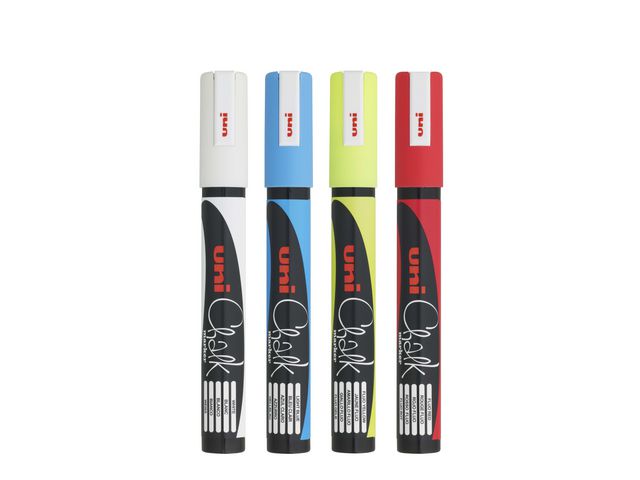 uni® griffelpennor finns i fyra snygga färger och är perfekta för användning på icke-porösa ytor, som till exempel metall, glas och whiteboard.