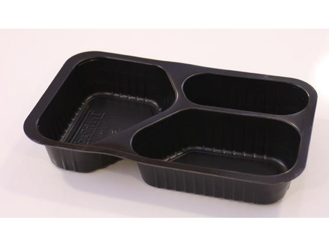 Portionsform TechPack 1/4GN, 3-fack i vit mineralfylld PP, passar för varm och kyld mat