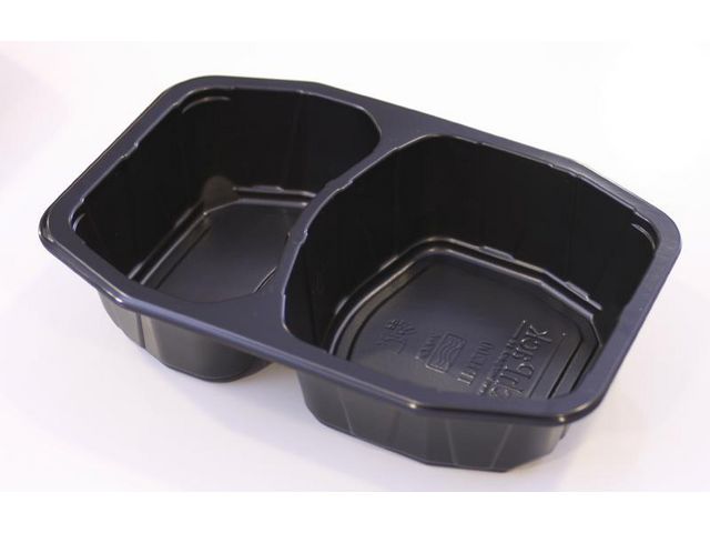 Portionsform TechPack HMR, 1-fack i svart mineralfylld PP, passar för varm och kyld mat