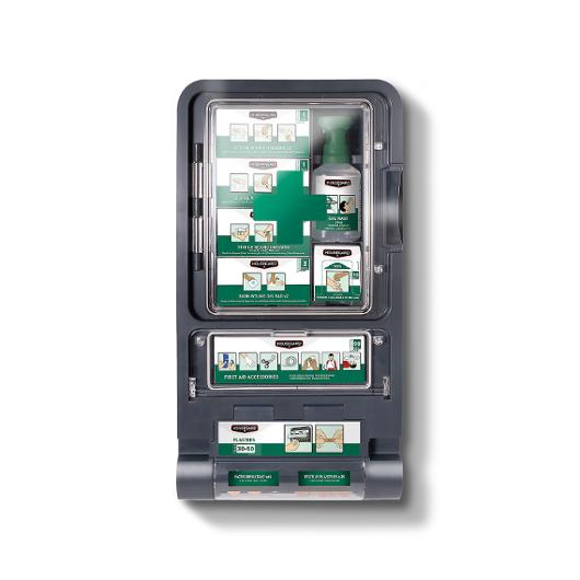 Stationen är konstruerad för att ge en snabb överblick och åtkomst när du som mest behöver det. Luckan till stationen är försedd med en gummilist som skyddar mot damm, fukt och smuts. Enheten är anpassad för arbetsplatser och offentliga miljöer där krav ställs på tydligt placerad och komplett Första Hjälpen-utrustning. Väggskylt enligt standard ingår och gör stationen enkel att lokalisera även på avstånd. Med synlig datummärkning på framsidan för enkel servicekontroll och enkel påfyllning av stationen utan att något verktyg behövs. Produkten är CE-märkt.