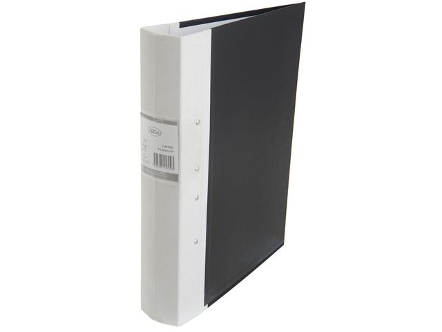 FSC-märkt svart träryggspärm med vit tygklädd rygg. MDF-skiva för en mer stabil och stadig pärm.