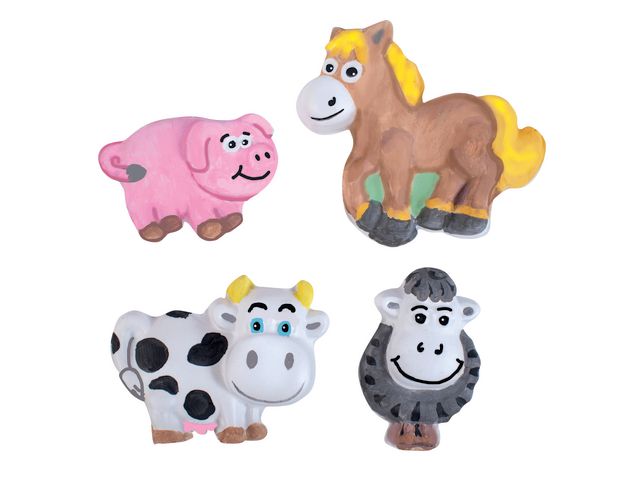 Använd modellgips för att gjuta dina egna små djur, och när de torkat kan du dekorera dem med vatten- eller akrylfärg. Använd dem som magneter eller lek med figurerna precis som de är. Det är en kreativ och underhållande aktivitet för att tillverka dina egna unika bondgårdsdjur.