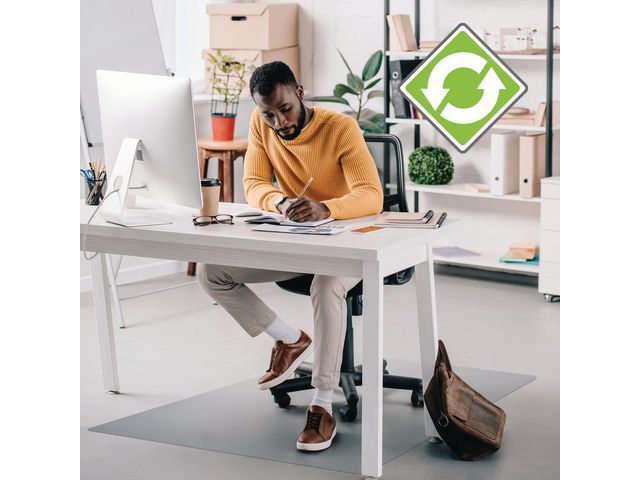 Ett golvskydd som är gjort av 50% återvunnet material med 25% förnybar energi och 100% återvinningsbart. Halkskyddad beläggning på mattans undersida förhindrar att mattan glider.