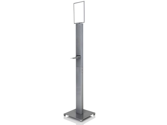 Robust golvstativ inkusive A4 skylt och droppbricka. (exkl dispenser).
