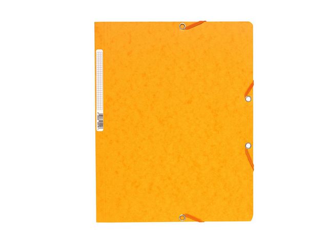 Mapp utan klaffar. Mappen Exacompta Nature Future® utan klaffar och med elastisk stängning har plats för 250 ark med A4-papper, vilket ger mer än tillräckligt med plats för dina dagliga arkiveringsbehov. Två elastiska gummiband runt kanterna ser till att innehållet inte glider ur. Du kan snabbt lägga in och ta ut dina dokument eftersom det inte finns några flikar på insidan. För din bekvämlighet har ryggen en etikett där du kan ange en titel för att snabbt identifiera mappens innehåll. Materialet i den här mappen är högkvalitativ och hållbart producerad FSC®-certifierad hårdglaserad präglad presspan, vilket gör produkten till ett slitstarkt, robust och miljövänligare val.