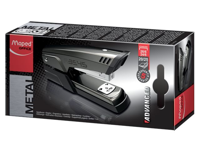 Häftapparat i elegant design med 180 graders öppning som gör det enkelt att sätta i häftklammer.