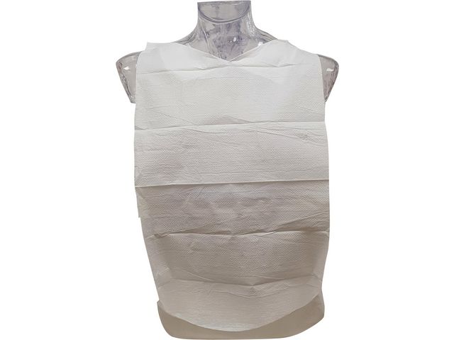 Fullt komposterbar och nedbrytbar engångshaklapp för vuxna, med självhäftande tejp och vändbar ficka.