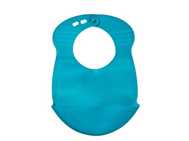 Haklapp i praktisk mjuk TPE plast. Den mjuka plasten gör att du enkelt kan rulla ihop och ta med haklappen på utflykten eller till smidig förvaring. Haklappen har en stor spillficka och den är lätt att torka rent samt tål diskmaskin.