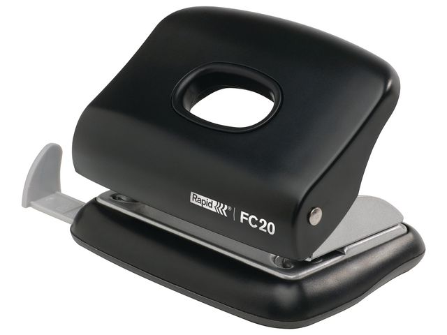 Rapid FC20 är ett hålslag med Europahålning, för hem skola och kontor. Handtag och bottenplatta av förstärkt ABS-plast. Stark metallkonstruktion för perfekt resultat. Locket i bottenplattan gör det lätt att tömma. Stansar 2 hål med 80mm hålavstånd. Designkoordinerad med häftapparaten F18 (art.nr 881357). Svart. Kapacitet 20 ark. Garanti 5 år.