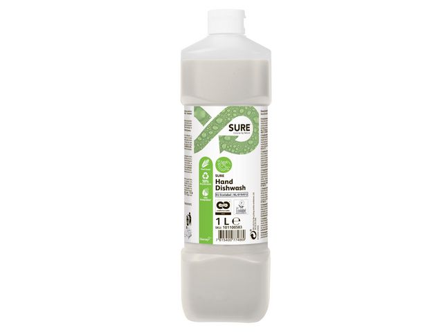 SURE Hand Dishwash från Diversey är ett miljömedvetet och väldigt effektivt val. Lösningarna är växtbaserade, 100 % nedbrytbara och använder förnybara energikällor. Det här koncentrerade diskmedlet är tillräckligt kraftfullt för att ta bort även de tuffaste smutsfläckarna på krukor och porslin. Tillsätt helt enkelt till diskvatten och använd för att skrubba och skölja. Sammansättningen ger dig ett resultat utan ränder på all disk, inklusive glas och bestick.