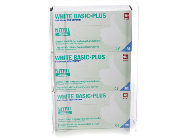 Handskhållare för engångshandskar är tillverkad av heltransparent plexiglas av högsta kvalitet.