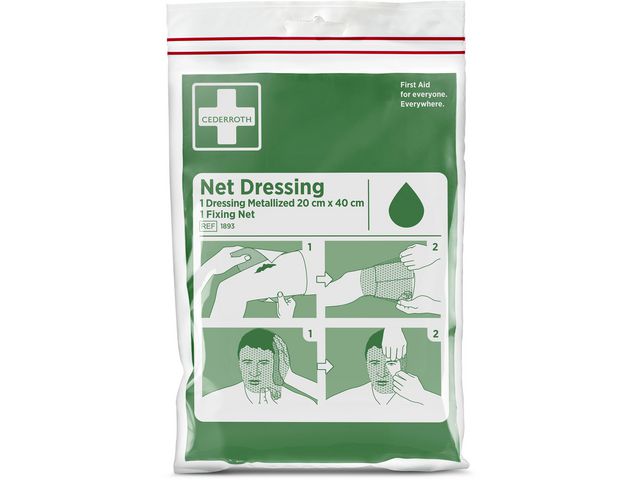Ett sterilt förband med metalliserad yta som inte fastnar i sår. Förbandet hålls på plats genom ett tubformat elastiskt fästnät. Produkten är CE-märkt.