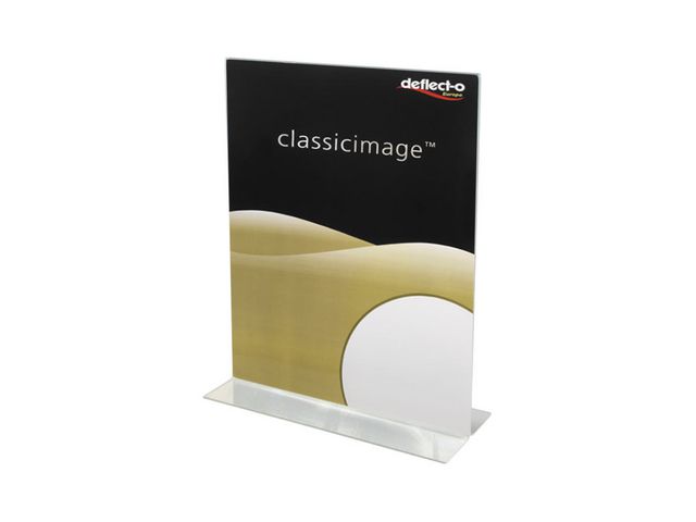 Akrylställ/Menyställ A3 med T-fot. Ett akrylställ som visar menyer, prisuppgifter, reklambudskap, fotografier eller annat på ett tydligt och snyggt sätt, dessutom är det läsbart från båda håll så därför passar den extra bra på t ex. bord eller andra ytor där dina kunder kan se informationen från båda håll.