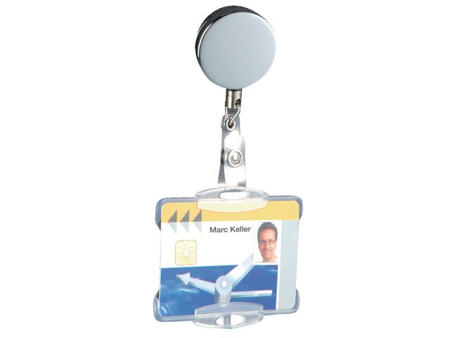 Den robusta jojon DURABLE är ett snyggt och praktiskt kontorstillbehör, eftersom den håller ID-kort som namnskyltar och passerkort på plats. Jojon är utdragbar till 80 cm för att ge snabb och enkel åtkomst till kort eller brickor. Dessutom har den en metallklämma som kan fästas i bältet eller skjortfickan. Tillverkad av PVC.