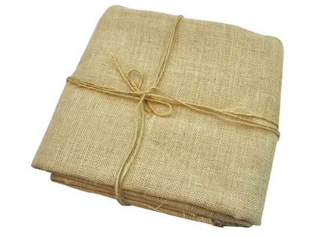 Naturfärgad juteväv. Sy till exempel en julgransmatta eller en praktisk vedsäck av tyget. Att limma på dekorationer går också bra.