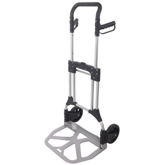 En riktig arbetshjälte som gör det enkelt att transportera tunga föremål på upp till 200 kg. Trots sin styrka väger den bara 12 kg tack vare den smarta konstruktionen i plast och aluminium. När den inte används kan du enkelt fälla ihop den. Perfekt när du vill spara plats i förrådet, bilen eller på lagret. Med enhandsfällningssystem, hjul och gummiband. Hjul och fotplatta är hopfällbara.