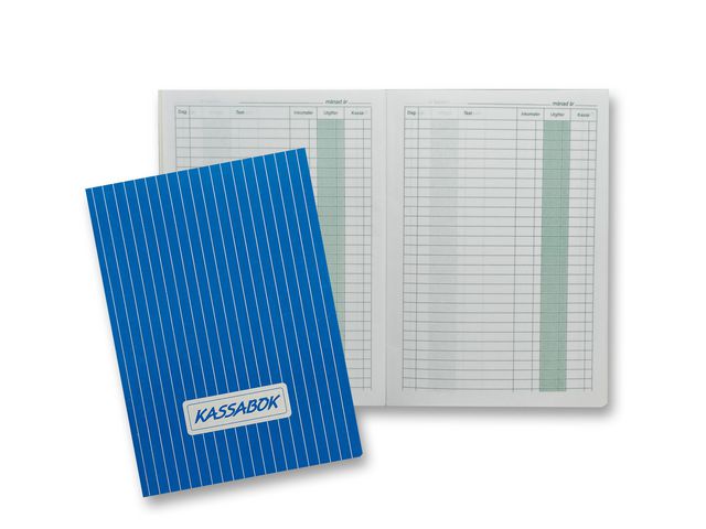 Kassabok i A5 format för privatbruk, 3 kolumner, 32 sidor. Blått kartongomslag. Sidorna är 80g offset papper medan omslaget är 250g bestruket, matt papper.