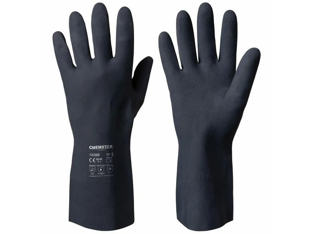 Handskar Chemstar by Granberg i neopren lämpliga för våta arbeten och kemikaliehantering, tillverkningsindustri, oljeindustri, kemisk industri, sanering och underhåll.