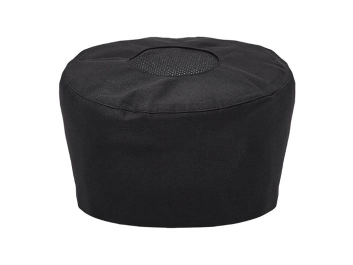 Svart kockmössa med mesh på ovansidan som håller huvudet svalt under hela arbetsdagen. Tillverkad i återvunnen polyester.