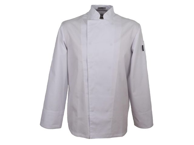Herrmodell med lång ärm och praktiska detaljer som gör den funktionell under hela arbetsdagen. Dold knäppning med tryckknappar för en ren look och frackskuren rygg för ökad rörelsefrihet.