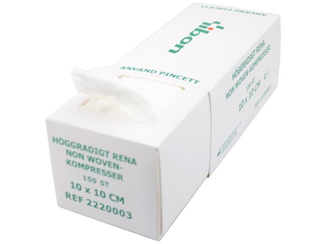 Non-woven kompresser i 70% viskos och 30% polyester. Kan steriliseras i EO och ånga 135 ºC. Produkten är CE-märkt.