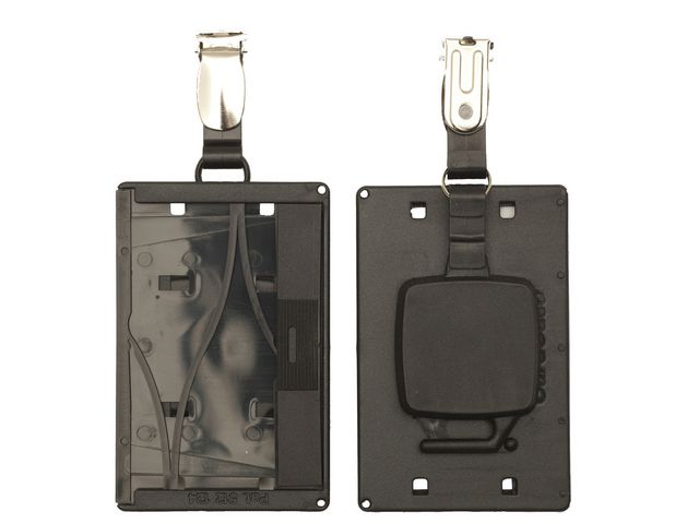 Stående korthållare för ett kort med inbyggd jojo för vänsterhänta. Tumgrepp där med hjälp av tummen kortet förs ut. Efter användande åker kortet in automatiskt i hållaren. Levereras med monterad yoyo och bältesklämma. Svart.