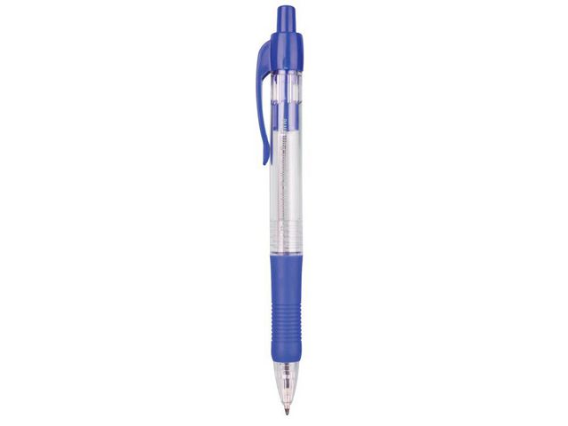 Kulspetspenna med tryckmekanism och ergonomsikt grepp. Bläckindikator.