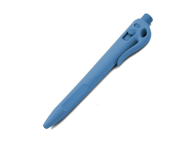 Blå kulspetspenna med tryckmekanism och god skrivkomfort. Den sträva ytan ger gott grepp i våta och feta arbetsmiljöer. Pennan har inga lösa delar och är av ett brytfast material som är godkänt för livsmedel och industri.