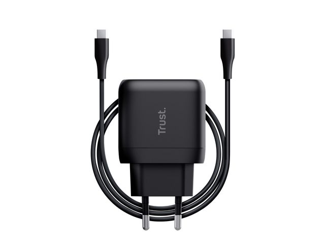 Kompakt och snabb 45W USB-C GaN-laddare med medföljande 2m USB-C-kabel.