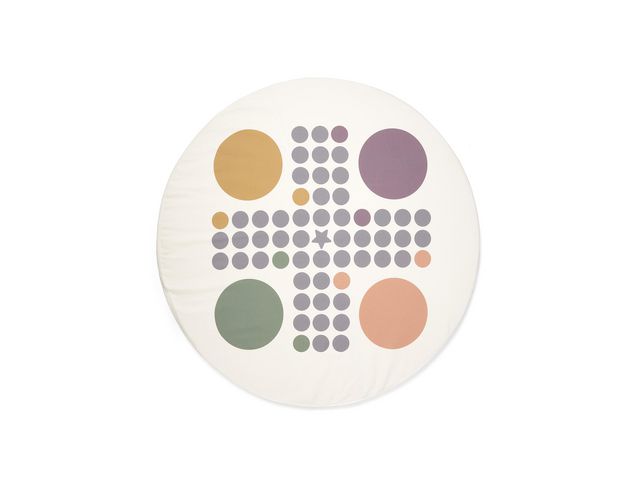 En stor vändbar golvkudde som både funkar som lekmatta och fiaspel i tjock bomullskanvas.
