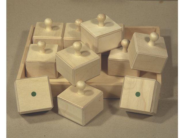 Det här ljudbaserade memoryspelet är en pedagogisk leksak som hjälper små barn att utveckla hörsel och koncentration genom lek. Det här ljudbaserade memoryspelet har en åldersanpassad design som inkluderar hållbara träblock med integrerade vred i en snidad trälåda. Ett barn kan lätt plocka upp dem för att producera ett ljud. Målet är att hitta två block som låter likadant. Färgade prickar längst ned på varje block gör det enkelt att kontrollera om man gissat rätt. Det här spelet hjälper barnen att bygga upp självförtroendet och finslipa sin hörsel med varje lyckad match, medan de samtidigt upptäcker glädjen i att lära sig genom lek. Designen gör den perfekt för små händer och den är ett perfekt komplement till alla lekrum.