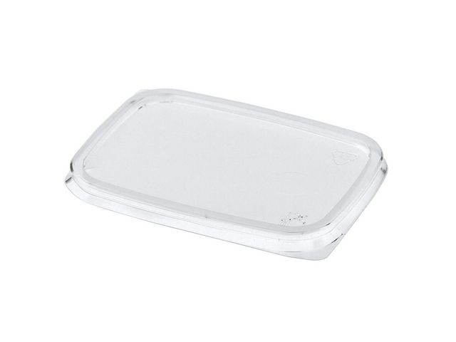 Lock tillhörande rektangulära bägare som tillverkat av PP som är återvinningsbart och sorteras som plast.